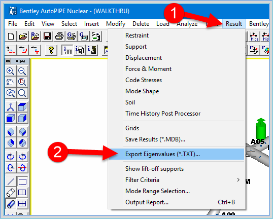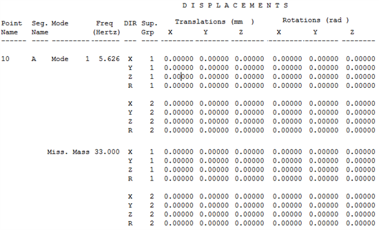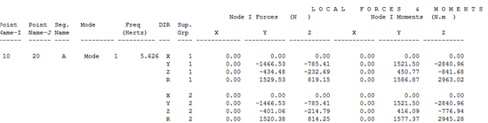 AutoPIPE will generate the ASCII file ModelName_EIG.TXT which contains the frequencies, mode shapes and nodal forces/moments.