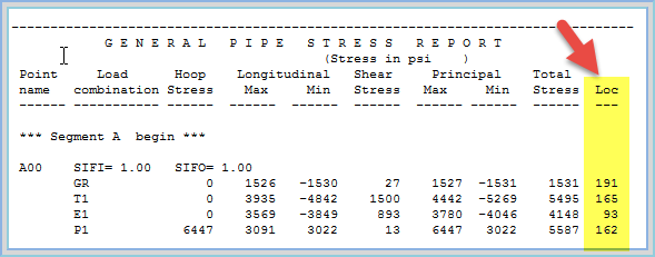 Answer: To interpret the LOC (Location) value in AutoPIPE’s General Stress Report: