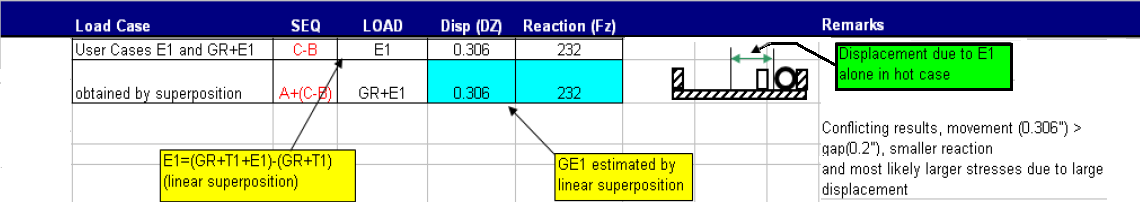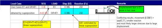 When support conditions change, superposition leads to inconsistent and less accurate results. Using AutoPIPE's method of loading sequences is much closer to reality and is used by the best known programs such as ANSYS finite element, FE -PIPE, ABAQUS, etc.