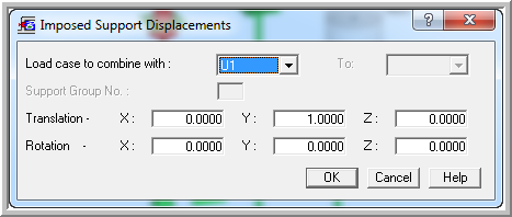 Example, the following support displacement is applied to load case U1, and will only be applied when load case U1 is included in a combination.