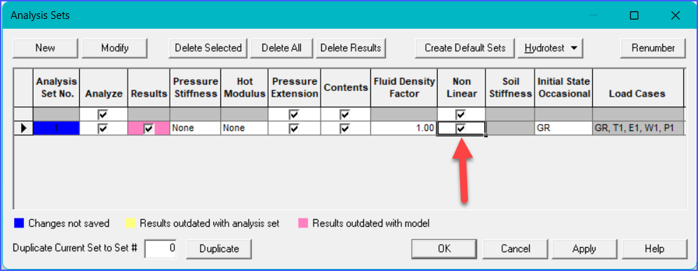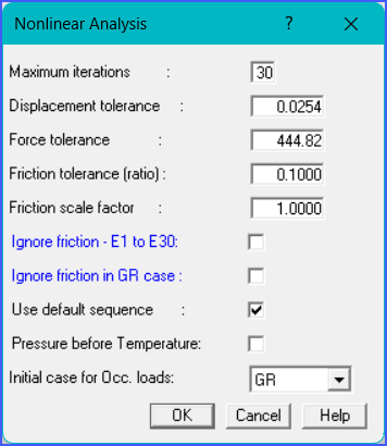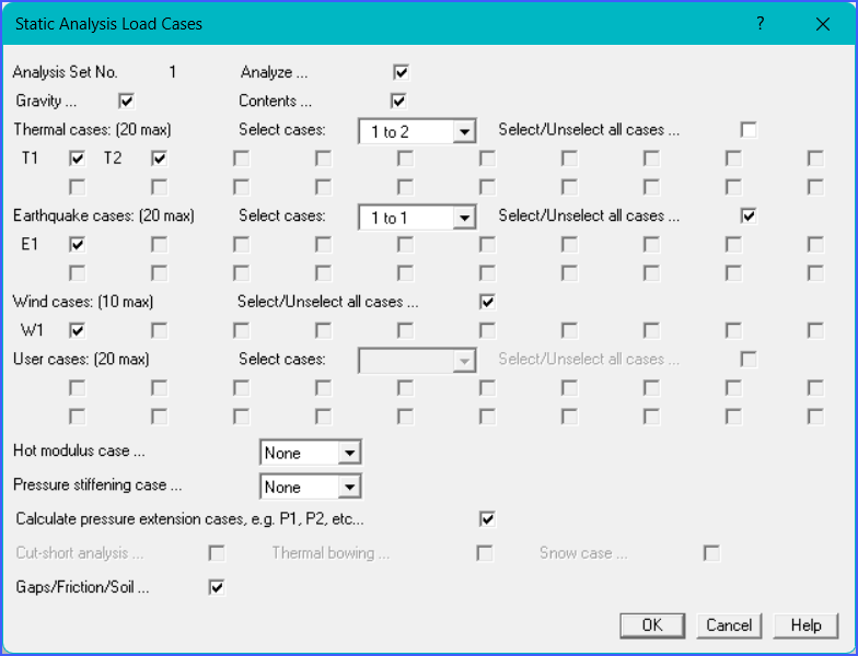AUTOPIPE is performing analyses for load increments. It is important to note that in an AUTOPIPE analysis, each load case is an increment of load, not a total load. For a linear analysis, the results for each load case are obtained all at once. By linear analysis, the “Gaps/Friction/Soil" option has to be disabled. For a nonlinear analysis the results are obtained sequentially. If analyses are performed for load increments ,The steps are: