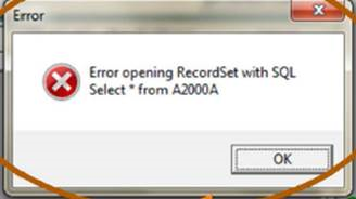 The message provides a clue to the problem encountered. "Error in opening RecordSet"... is hinting to an issue with opening a database file that contains various records. The only database files used in AutoPIPE Nozzle are related to Material files. Therefore, there is an issue with one or more of the 4 material database files installed by AutoPIPE Nozzle. Also, if there is a user defined material database file, the specific file may be missing or corrupted.
