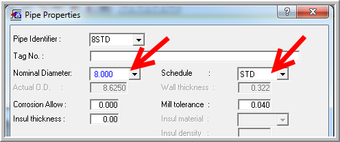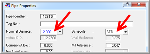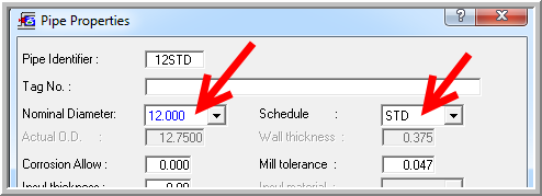 3. Specify Nominal Dia = 12.00 inches and Sch = STD: