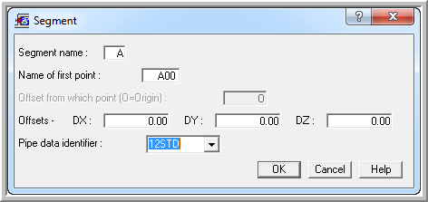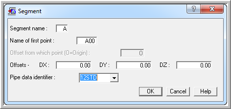 2. At the first point in the model specify Pipe Data ID = 12STD and press OK button:
