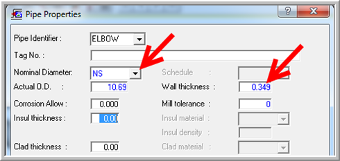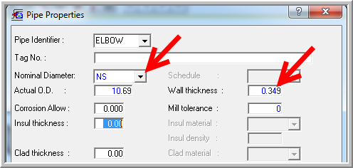 9. insert a new Pipe Property called ELBOW. Enter the pipe data as shown in the figure (nonstandard nominal size: NS) based on the following averages: