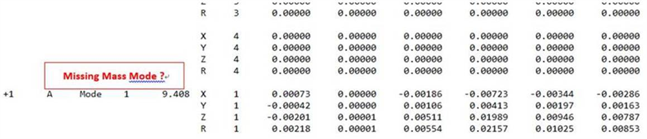 At this time, Missing Mass contribution are not printed in the modal report.