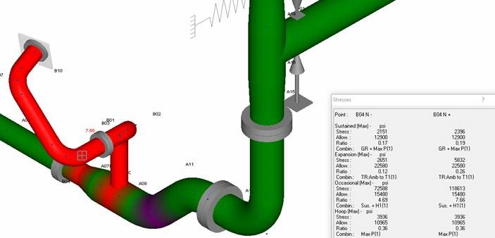3. Change of direction due to bends results in high moment values caused by the high pipe internal forces