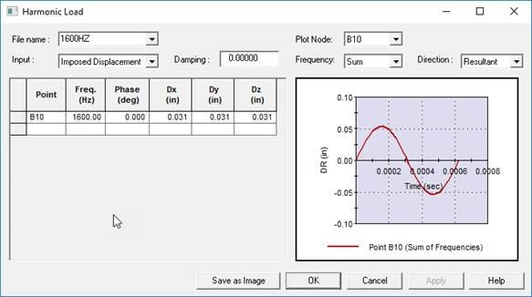 The analysis shows that is fails severely under a harmonic load in segment B. The load is small you would think at 0.05in resultant displacement, but very high frequency.Applying the same displacement statically produces a significantly lower result. Can you explain why this is? Why is it that a very high frequency vibration can create such a high stress. I know they have gaps in dynamic cases that will be removed, but this isn't going to make any different at this location.