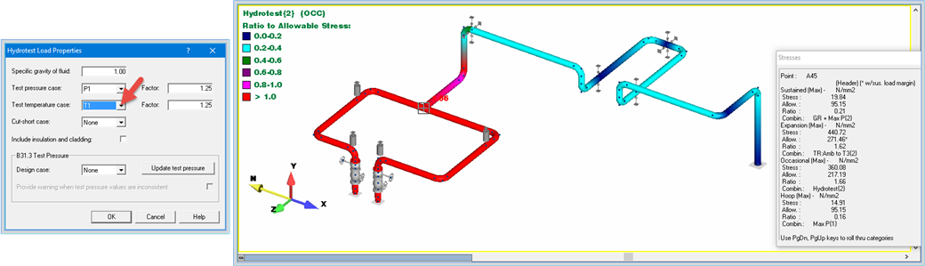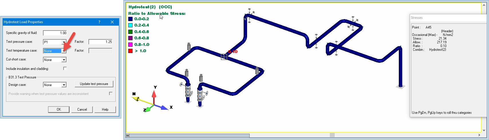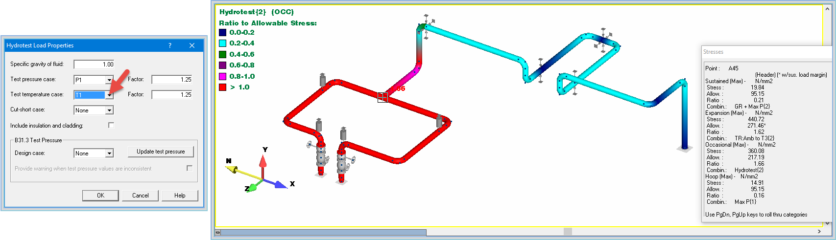 When including Temperature (T3 = 400 deg C) in the Hydrotest load combination, the stresses are massive. Without it they are tiny. Why?
