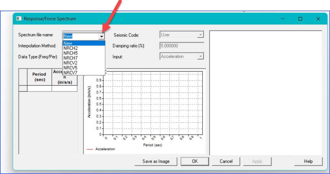1. Inside of AutoPIPE using Response/Force Spectrum Load dialog