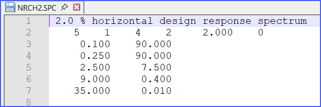 2. Best method to correctly format an ASCII file is to first open a model in AutoPIPE and using the Load> "Response/Force Spectrum Loads" command enter the data into the dialog as needed and press OK button to automatically create the *.SPC file in the same folder as the model. Locate the *.SPC file, and opened with any word processing application (i.e. NotePad ++, Ultra Edit, MS Word), notice the correct formatting and values. Adjust the file as needed but maintain the exact formatting structure. Save the file, and use in AutoPIPE as needed.