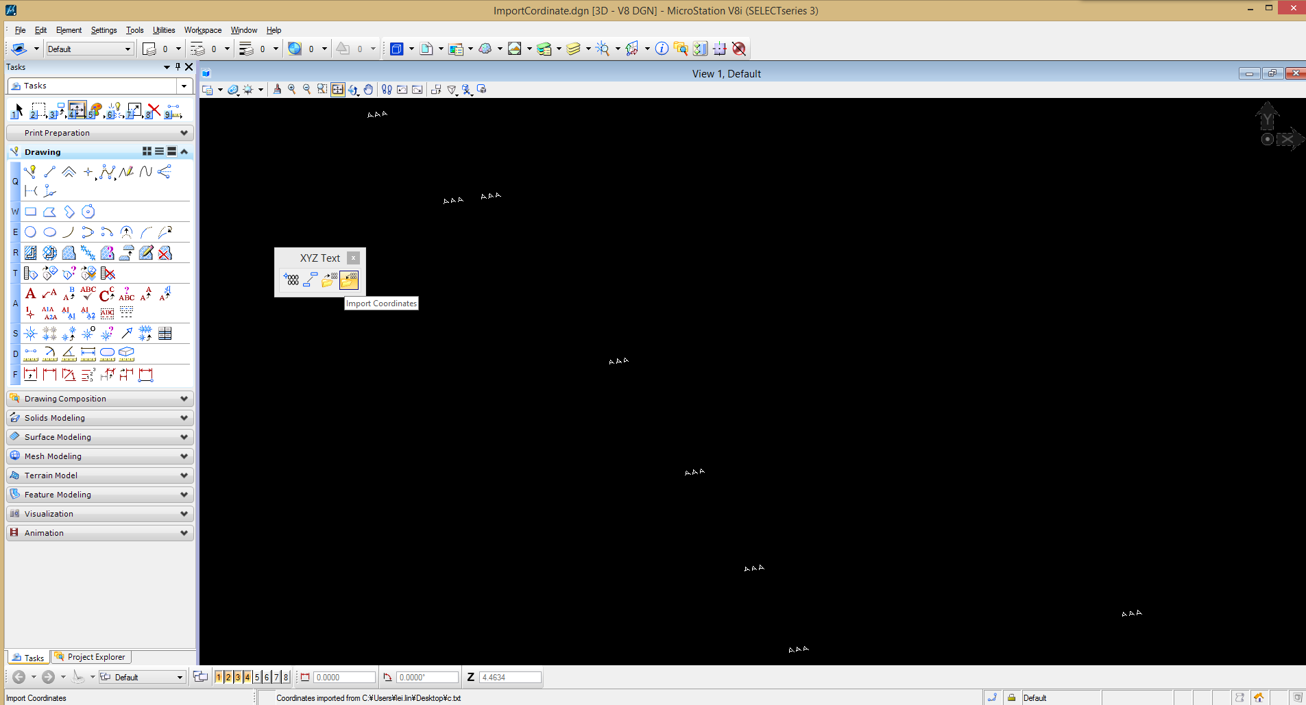 ③ 点击最右边的Import Coordinates图标,打开Import Coordinates窗口。输入KEY-IN命令 import points 可以直接打开该窗口。