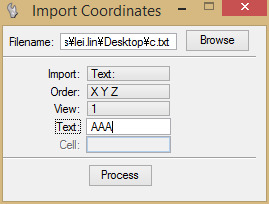 ・在Text选项里,可以指定导入到各个坐标的文字列(最长可以指定10个字符),该选项只是在Import被设定为Text时可用
