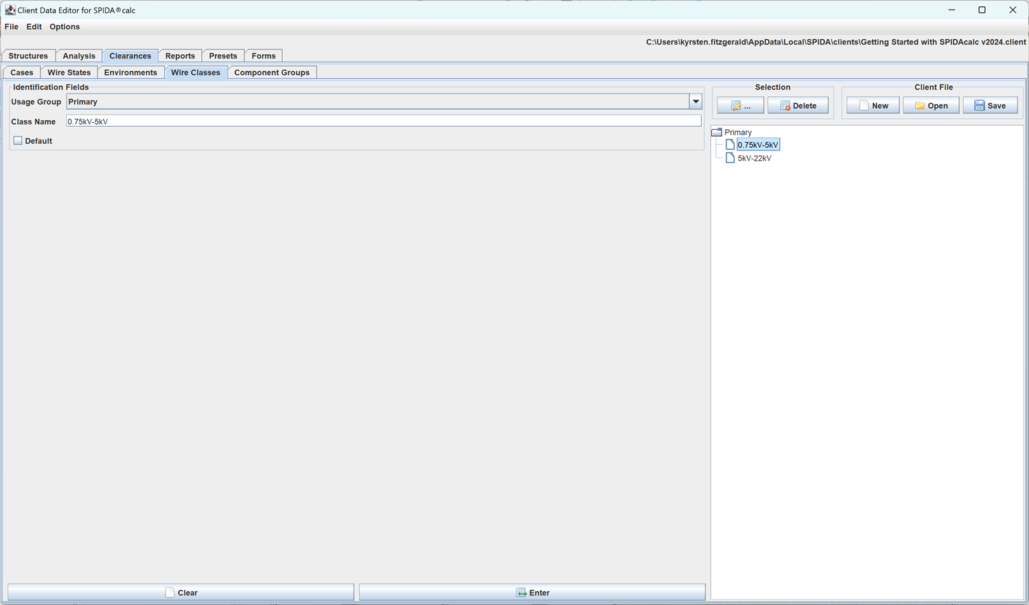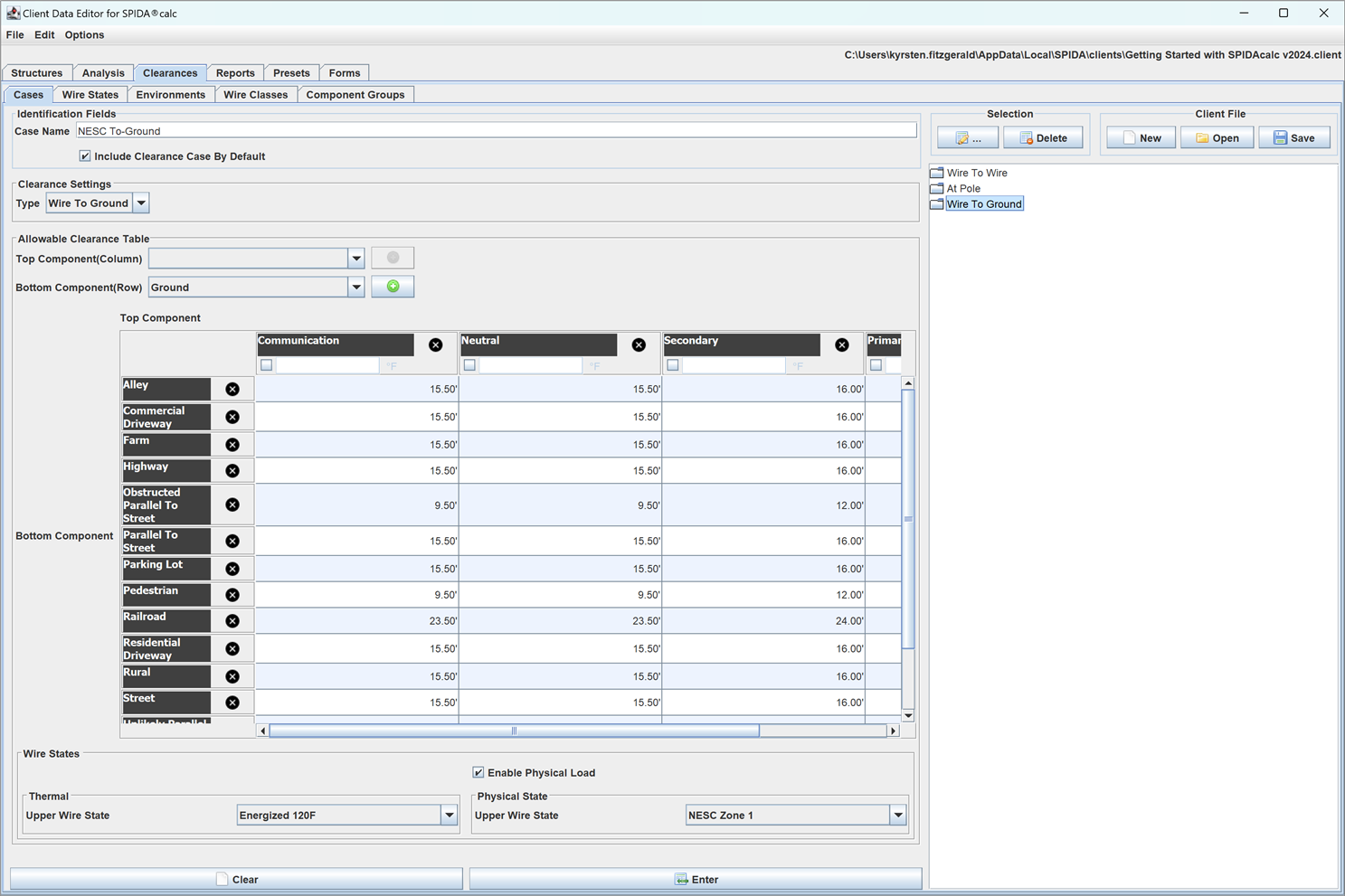 - Case Name: Enter a name for the clearance case. This value will be used to create the case name which will appear in the selection tree and in SPIDAcalc.