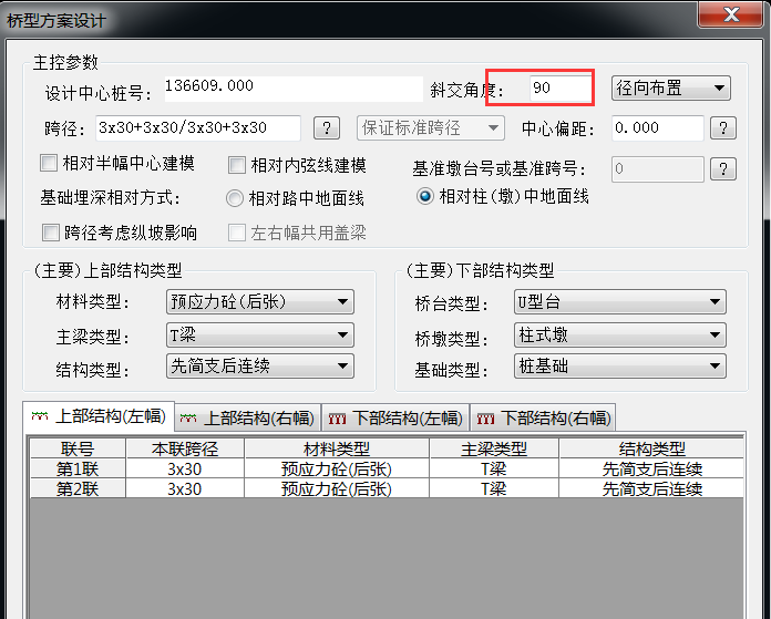 第一步,桥的斜交角度为90度,并套用每联的上部标准图建立桥型图