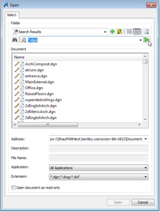 在集成的文件打开对话框里,运行高级搜索找DGN文档