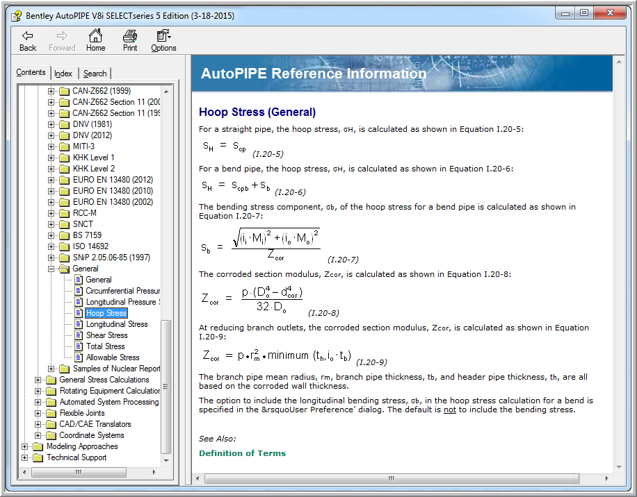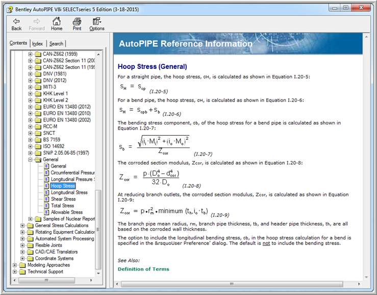 Help > Contents> Contents Tab> Reference Information> General Stress Calculations>
