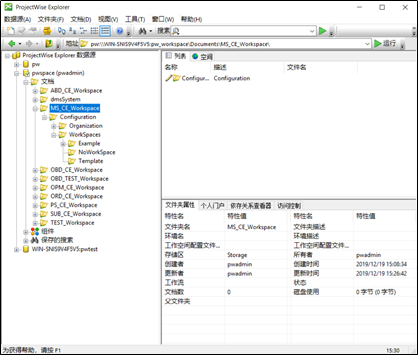 可以看到工作空间已经导入到ProjectWise Explorer中。