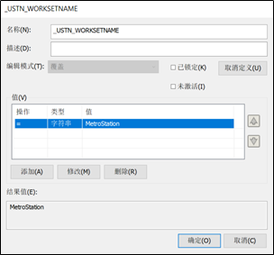 在配置块中新建变量 _USTN_WORKSETNAME变量,并赋值为MetroStation (可结合托管的工作集名字自定义).