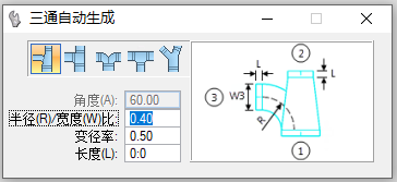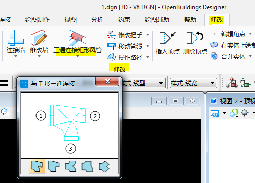 C.三通和四通的自动生成:CE中绘制窗口只显示有三通或四通的类型及接口不再像V8i附带有参数,角度等参数可在绘制生成后通过构件的属性修改设定