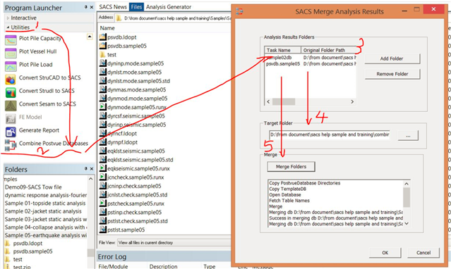 在sacs executive 窗口中Utilities下Combine Postvue Databases功能能够完成psvdb结果文件的组合,从而实现仅在一个psvdb文件就查看多个psvdb文件的结果。使用该功能的前提是psvdb文件中包含sacsdb.db文件,通过analysis generator中analysis options栏勾选sacs reports database选项即可生成sacsdb.db文件。目前仅静态分析和极端波浪分析能够生成sacsdb.db文件,因此所有的静态分析结果psvdb文件均可实现组合。