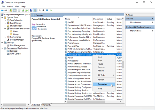 5.2 找到PostgreSQL数据库,然后右键菜单点击属性。