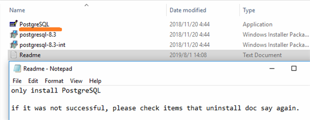 注:仅安装文件夹中的PostgreSQL。