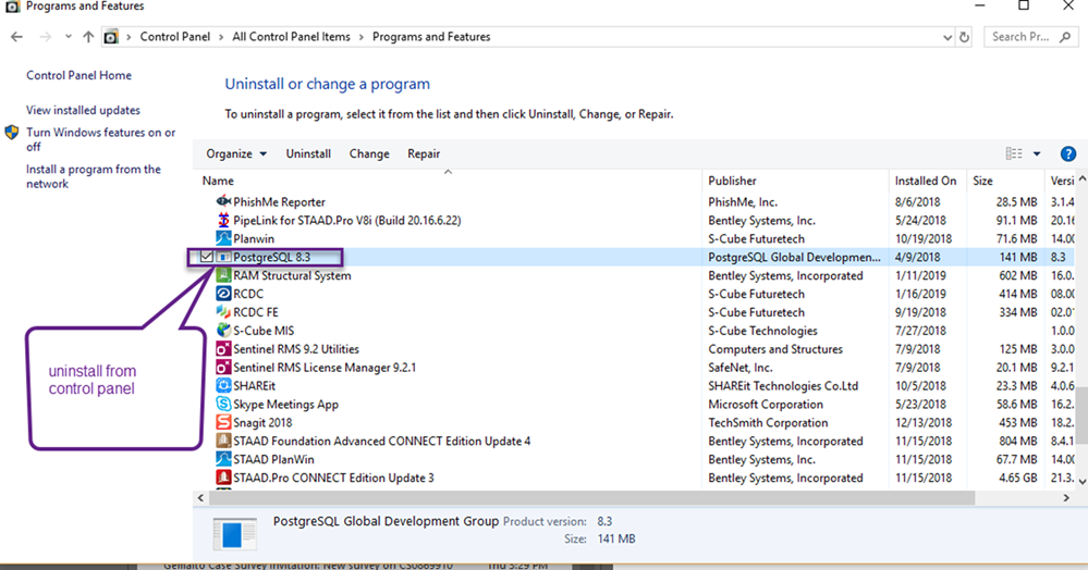 1. 卸载数据库PostgreSQL 8.3