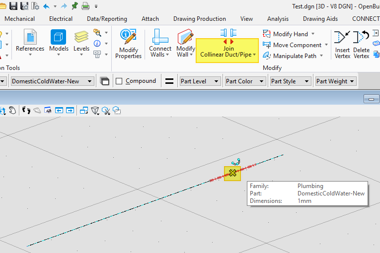 注意该命令只适用于首尾相连的管道,如果没有相连,要先用设备的拉伸工具将其拉伸到一起。