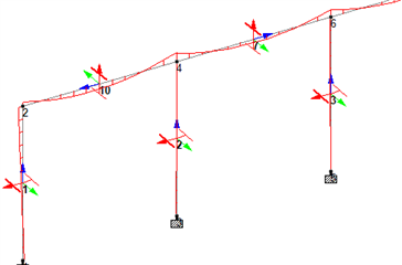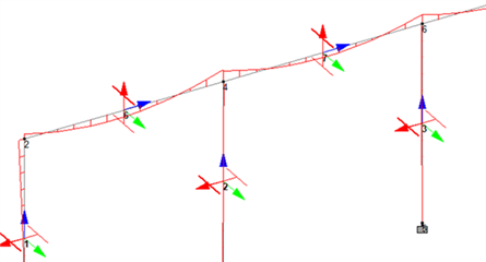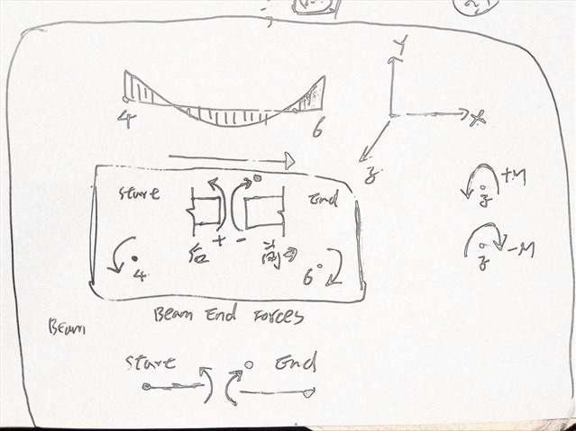 3. 以7号梁来说,其局部坐标系X方向为4号点(起始点)到6号点(终结点),其端部力如下图所示:4号点的杆端力以逆时针方向绕着4号点,其矢量方向同梁局部坐标系Z方向相同,故为+号;6号点的杆端力以顺时针方向绕着6号点,其矢量方向同梁局部坐标系-Z方向相同,故为-号。