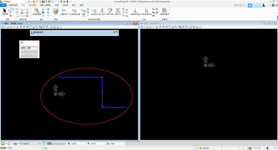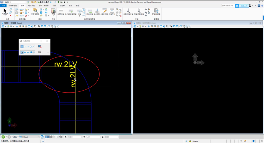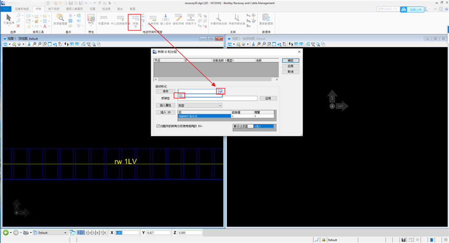 6.在简单的画出一桥架后,可以观察到桥架按照敷设顺序,自动被编写了ID,ID中包含了刚刚设置的公用名、编号以及电压等级的信息;