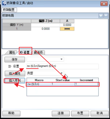 3.在“ID设置”中的“插入序列”对话框内,依次设置ID的公用名、起始值以及增量,然后点击“插入序列”,可以在ID设置右侧看到结果;