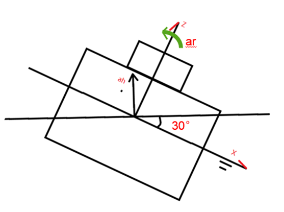 X方向加速度:ax = -11.843 / 180 * π * 10 + 1.2g * cos(90deg+30deg) =-2.067-5.884=-7.951 m/sec^2