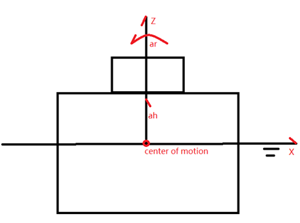 采用以上两种方式时,假定结构总体Y坐标与纵荡一致,X坐标与横荡一致,Z与垂荡一致,只考虑垂荡和横摇运动,则tow计算程序将按照下图所示进行考虑,即以水平位置作为计算参考。MOTION中的旋转角只用于考虑角加速度计算。比如横摇角幅值30°,横摇周期10秒,则角频率ω=2*π*f=0.6283, 角加速度ar=β=30°* ω^2 =11.843 °/sec ^2 = 0.2067 rad/sec^2.