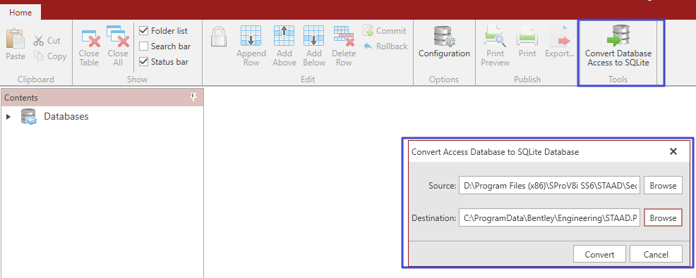 b. 打开CE软件,然后Specification>Tools>Section Databse>Convert Database Access to SQLite