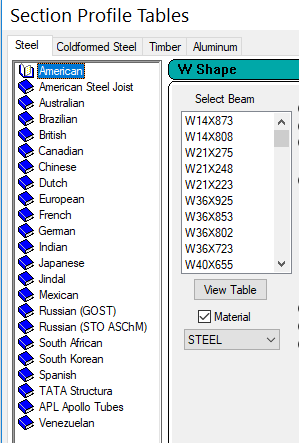 1. 标准数据库中的名称和项目个数是无法改变的,如Steel中标准数据库中总共包含了23个国家地区的截面数据。