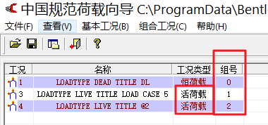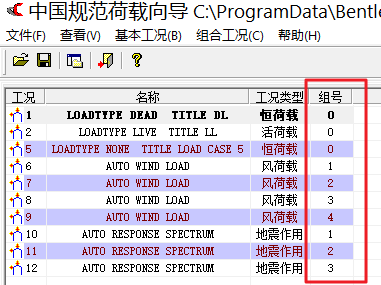 组号是相对于某一种荷载类型而言的,主要作用是确定荷载之间的组合规则。