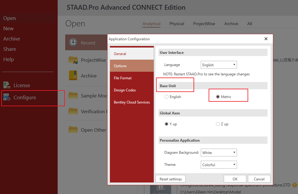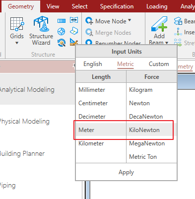 用户描述的这个问题,可以通过修改模型的基准单位来解决:启动STAAD软件>Configure>Base Unit>Metric