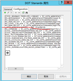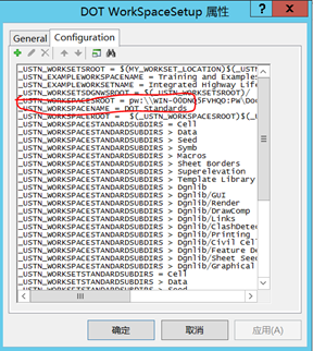 (d)添加内容: _USTN_WORKSPACENAME = DOT Standards