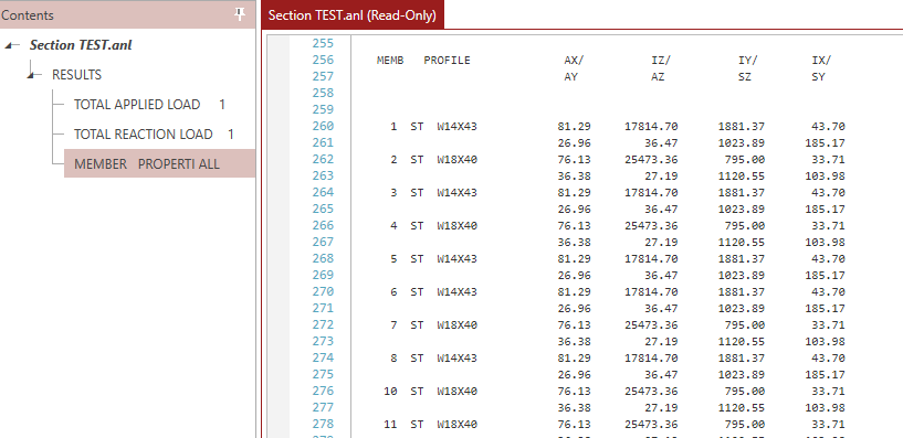 用户可以通过输入命令“PRINT MEMBER PROPERTIES”打印省略输入的截面属性,如截面面积,惯性矩、剪切面积等。