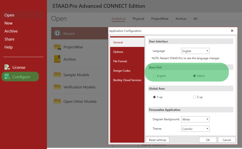 1.1 配置STAAD.Pro基准建模单位: