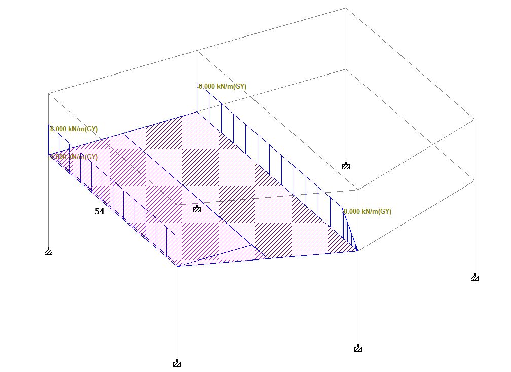 b. 当模型承受楼板活荷载且不考虑折减时,梁构件54导荷后,承受的荷载值为-(8+0.5)=-8.5KN/m