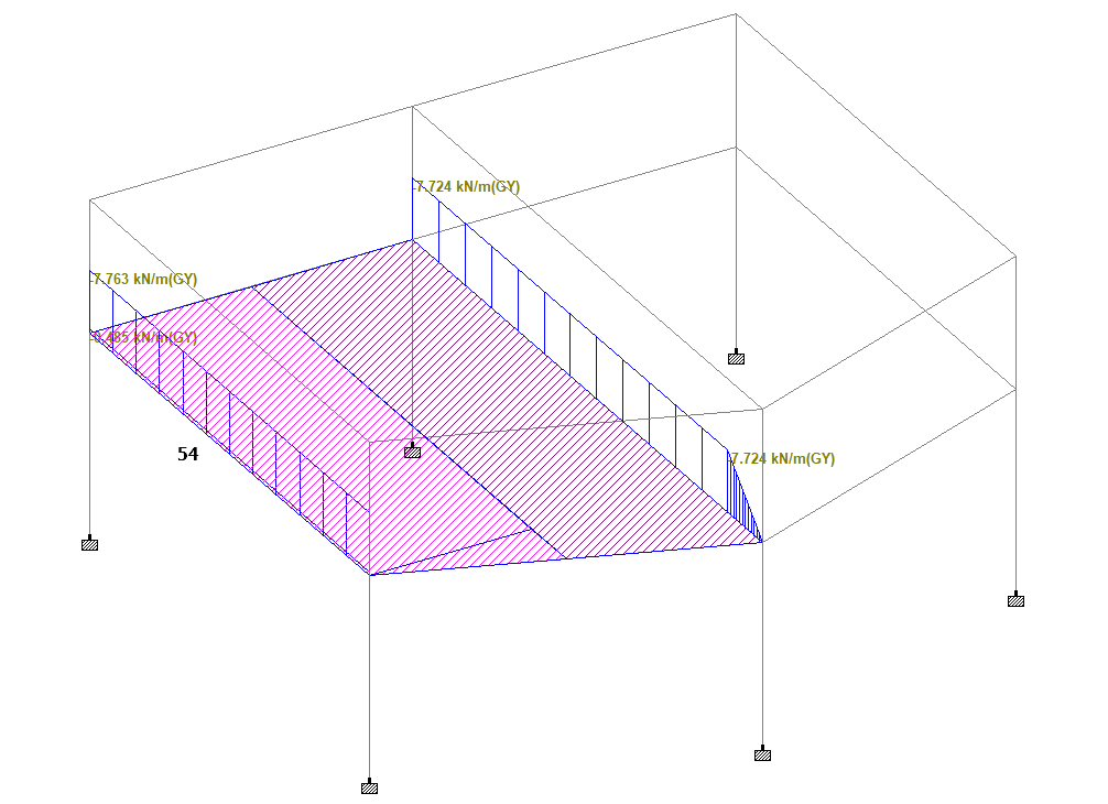 c. 当模型承受楼板活荷载且考虑折减时,梁构件54导荷后,承受的荷载值为-(7.763+0.485)=-8.248KN/m