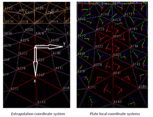 一点应力的旋转是将局部的plate单元的坐标旋转到外插值坐标(以A-B方向为X方向),具体的坐标示例如下图所示。