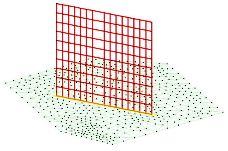 g. 点击OK按钮,则板和墙沿着相交边界有一组共用节点。
