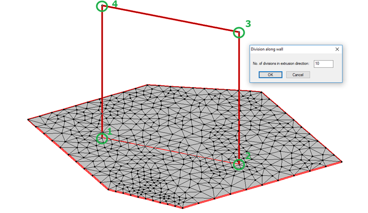 注意:墙单元沿着水平方向的网格密度已经由板/墙连接线的密度确定了。这里“沿墙分割”网格密度是指竖直方向的网格密度。