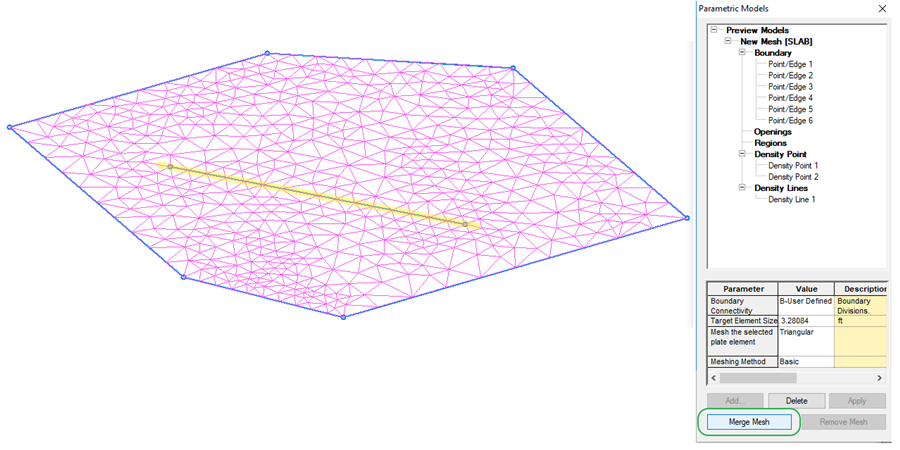 选择不添加洞口,选择Merge Mesh-网格生成,可以看到板/墙体连接交接线的网格密度。