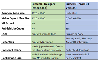 从OpenRoads ConceptStation update7开始,LumenRT将是一个单独的产品,不再集成在OpenRoads ConceptStation。用户可以免费使用LumenRT Desinger。如果需要完整版本的LumenRT,则需要购买许可证。