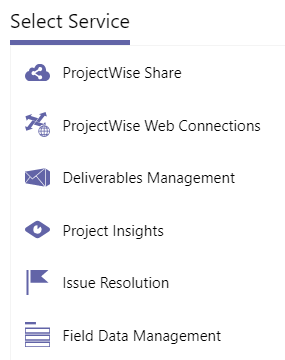 Use ProjectWise Teams integration to add tabs with ProjectWise Services (available via connect.bentley.com) into your Teams. The integration supports these services: