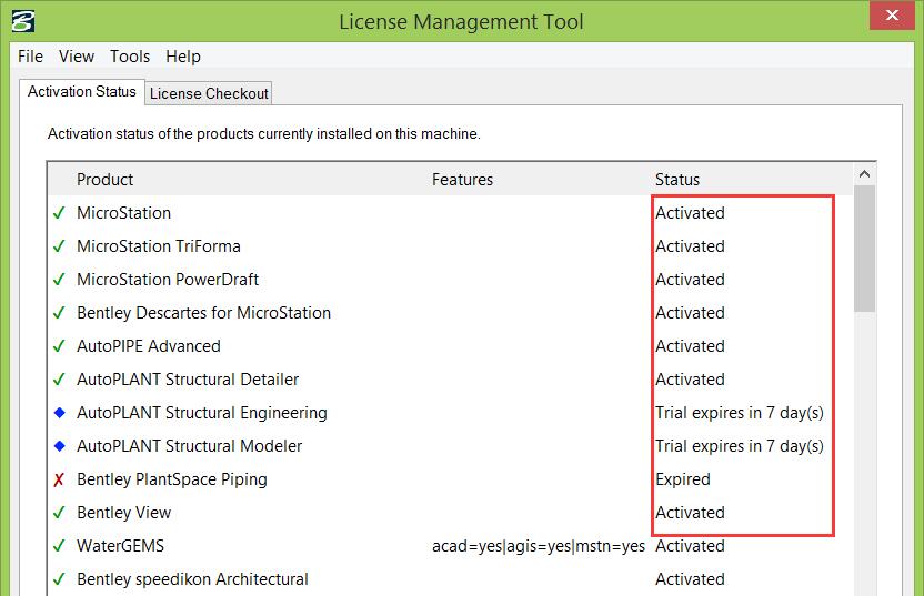 - 对于某些旧版的结构或管道计算产品,如RAM、STAAD和AutoPipe,它们使用特殊的软件授权机制,状态可能会显示为“Trial Expires(试用过期)”。这是一个例外!